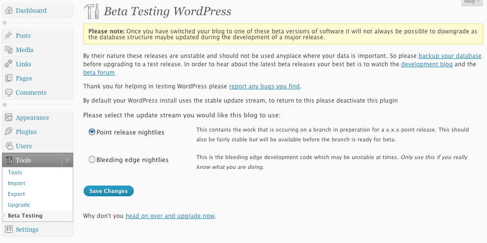 A partir de aquí os invito a probar la beta 1 de WordPress 3.6, testar las novedades, instalar vuestros plugins favoritos y recordar que no os la instaléis en vuestros WordPress, es una beta y lo beta, beta es.