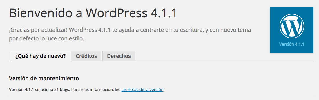 No es necesaria ninguna acción adicional por tu parte. Para más información sobre la versión 4.1.1 revisa la pantalla Acerca de WordPress: