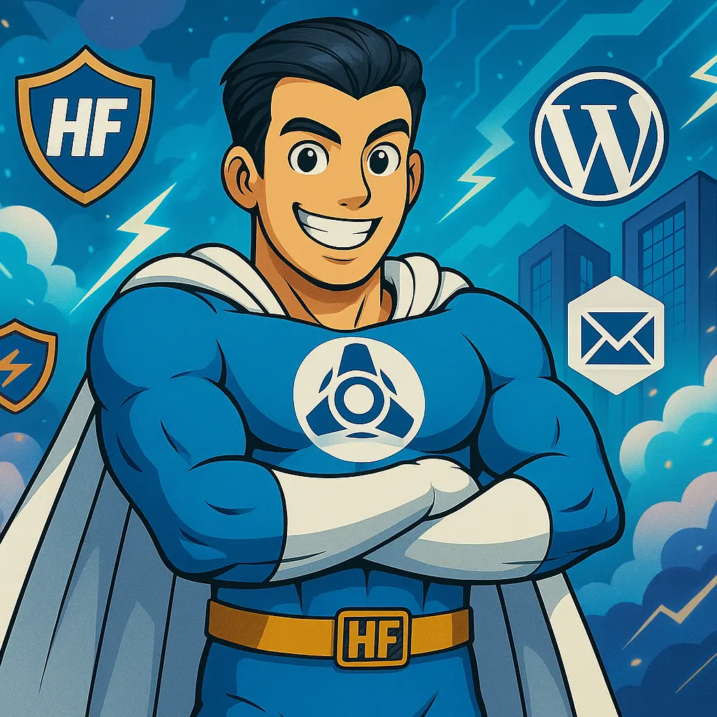 Es una representación. Una forma de poner cara —y capa— a lo que llevamos haciendo desde hace más de 24 años: proteger tu web, ayudarte con los problemas, migrar tus correos sin perder datos, optimizar tu WordPress, darte soporte de verdad cuando lo necesitas.